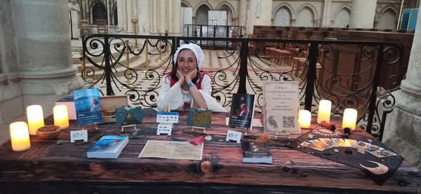 Inspirée par le festival du week-end qui venait de s’écouler, j’écrivais les premières lignes du « Chant des prophéties ». Je ne pensais pas que ce premier paragraphe mènerait à une trilogie. Je n’imaginais donc pas me trouver un jour dans la superbe Collégiale Saint-Quiriace, qui m’avait fait rêver la veille, pour y exposer MES livres.